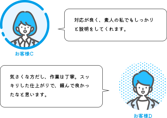 もちろん、すべての施工は丁寧に行い、尽力しておりますが、万が一不具合がございましたら早急にご連絡ください。